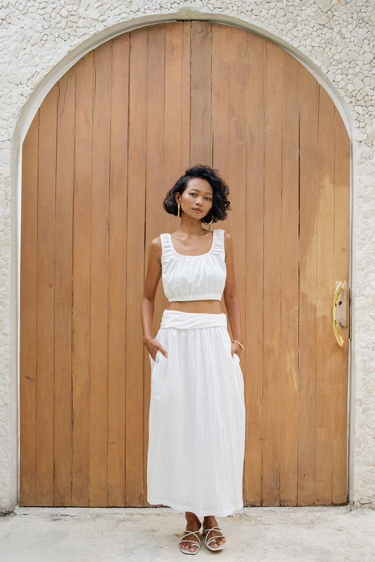 MAI Crinkle Cotton Skirt - White (LAST PIECE)