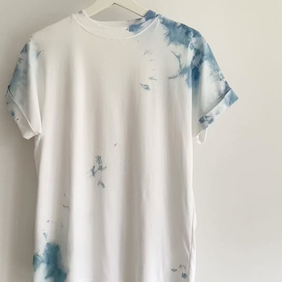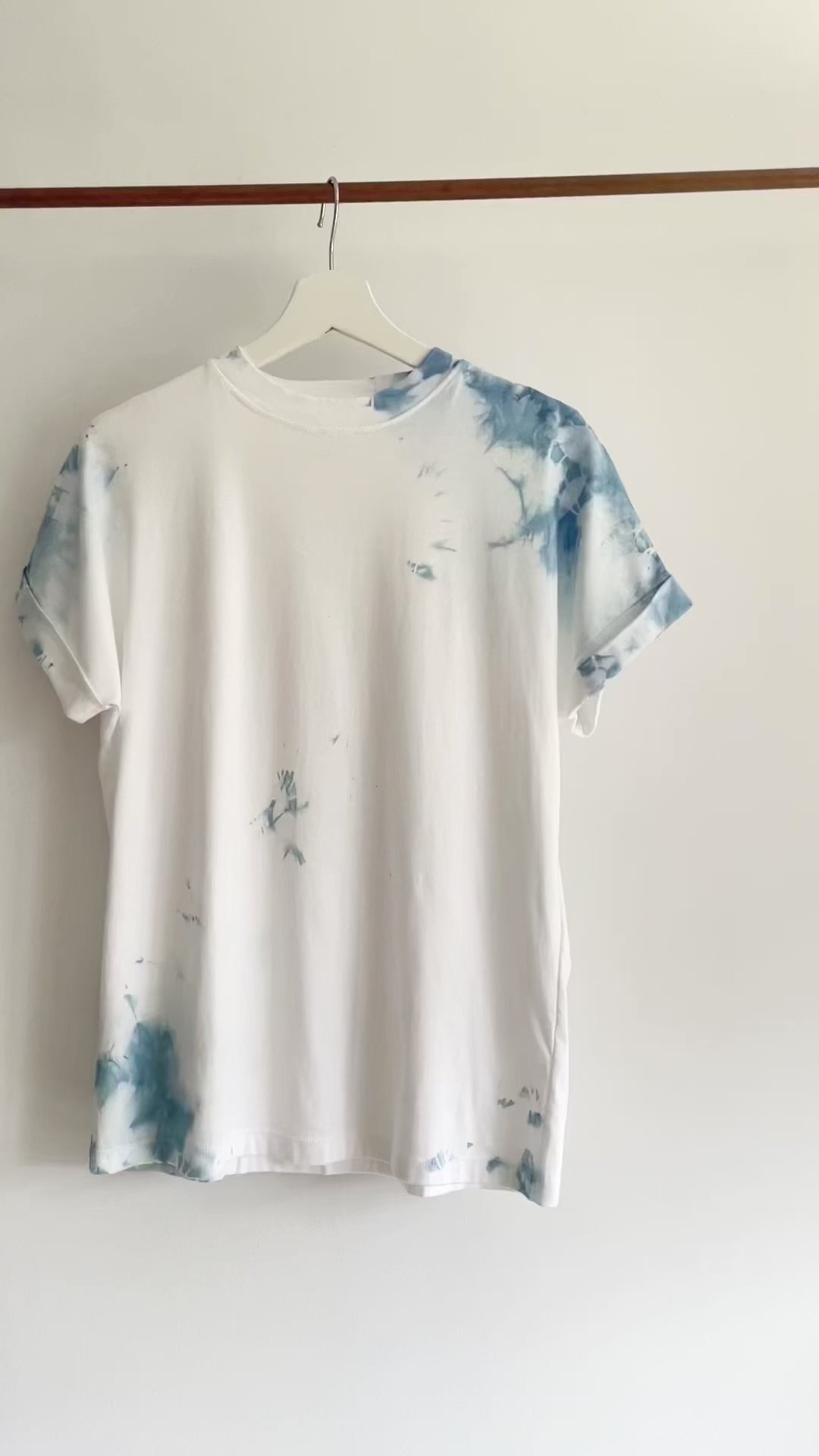 EVA is our artisanal staple hand-dyed in natural indigo. A piece-dyed item, every piece is individually dyed to control the placement of the print. Please note that due to the artisanal nature of the technique, no two pieces will ever look exactly the same.
